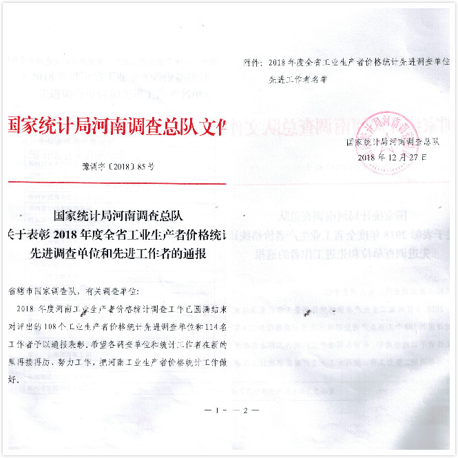 日前,自國家統(tǒng)計局河南調(diào)查總隊獲得消息,亞澳農(nóng)機獲得2018年度全省工業(yè)生產(chǎn)者價格統(tǒng)計先進調(diào)查單位。