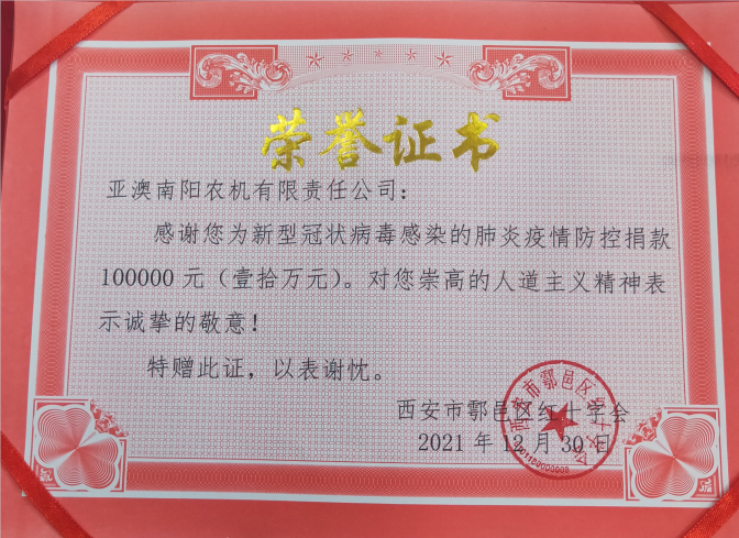 十二月份,一場(chǎng)突如其來的疫情打亂了西安人平靜的生活,面對(duì)日趨嚴(yán)峻的疫情態(tài)勢(shì),亞澳農(nóng)機(jī)作為一家有社會(huì)責(zé)任感的企業(yè)積極奉獻(xiàn)自己力量,亞澳農(nóng)機(jī)南陽公司為鄠邑區(qū)紅十字會(huì)捐款100000元,亞澳農(nóng)機(jī)總公司為鄠邑區(qū)甘亭街道東韓村捐款40000元,亞澳農(nóng)機(jī)與社會(huì)各界人士并肩作戰(zhàn),為疫情防控工作貢獻(xiàn)自己的一份薄力。