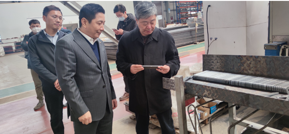 領(lǐng)導(dǎo)一行先后參觀了公司產(chǎn)品展廳、制造現(xiàn)場等區(qū)域,在總經(jīng)理的介紹下,領(lǐng)導(dǎo)們對公司產(chǎn)品智能制造過程、生產(chǎn)管理模式、綠色工廠體系發(fā)展、技術(shù)研發(fā)、知識產(chǎn)權(quán)等做了詳細(xì)了解,隨后進行了會談。