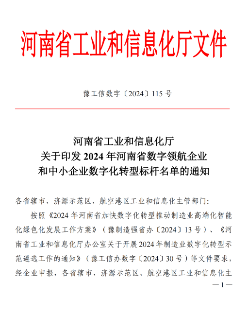 河南省省級中小企業(yè)數(shù)字化轉(zhuǎn)型標(biāo)桿企業(yè)