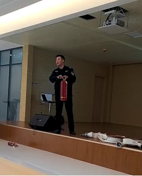 活動分兩部分進行:第一部分有王教官針對防火安全知識,結合案例介紹,培訓大家對日常工作安全的應急預案、隱患防護方法及應對措施;第二部分通過現場防火安全演練,教育大家正確使用防火器材,同時對日常的安全隱患檢查、排除指導。