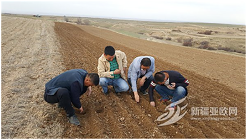 5月22日,奇臺縣農(nóng)機(jī)局局長劉建文帶領(lǐng)縣農(nóng)機(jī)推廣站技術(shù)人員,專程來到奇臺縣吉布庫鎮(zhèn)天河四村保護(hù)性耕作試驗(yàn)基地,察看免耕播種春小麥生長情況。