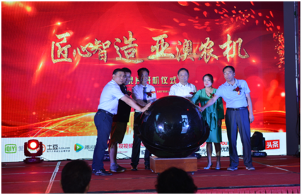 7月11日上午,CCTV發(fā)現(xiàn)之旅《匠心智造》欄目亞澳農(nóng)機(jī)開機(jī)儀式隆重舉行。匠心欄目組監(jiān)制李會(huì)晴、導(dǎo)演張軍賢、中國農(nóng)業(yè)機(jī)械化協(xié)會(huì)劉憲會(huì)長、中國農(nóng)機(jī)工業(yè)協(xié)會(huì)劉偉華副秘書長、農(nóng)業(yè)部農(nóng)機(jī)推廣總站劉司法處長、中國農(nóng)機(jī)流通協(xié)會(huì)馬錚處長、中國農(nóng)機(jī)安全報(bào)社王建鵬副社長、陜西省農(nóng)業(yè)機(jī)械化管理局上官永副局長、甘肅省農(nóng)業(yè)機(jī)械質(zhì)量管理總站張恩貴站長、山西省農(nóng)機(jī)推廣站張玉峰站長、陜西省農(nóng)業(yè)機(jī)械鑒定站王延宏站長、陜西省農(nóng)業(yè)機(jī)械研究所賀功民所長、戶縣人民政府毛安副縣長、西安灃京工業(yè)園黨工委楊波書記、西安亞澳農(nóng)機(jī)股份有限公司董事長史可器、總經(jīng)理史森強(qiáng)及各地經(jīng)銷商、給供應(yīng)商等300余人參加開機(jī)儀式.