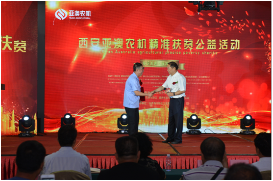 開機(jī)儀式上,中國農(nóng)機(jī)化協(xié)會(huì)還就“甘肅省蘭州市永登縣”精準(zhǔn)扶貧工作給予亞澳高度的認(rèn)可。永登縣團(tuán)莊村屬干旱貧困山區(qū),全村現(xiàn)有7個(gè)村民小組,421戶、1696人。近年來,幫扶單位先后捐贈(zèng)了30多臺(tái)(套)特色農(nóng)機(jī)具,但仍缺少大中型農(nóng)機(jī)具,農(nóng)機(jī)化服務(wù)能力不足,不能滿足農(nóng)業(yè)生產(chǎn)需求。此次中國農(nóng)業(yè)機(jī)械化協(xié)會(huì)聯(lián)合亞澳公司等有關(guān)單位向團(tuán)莊村捐贈(zèng)價(jià)值40多萬元農(nóng)業(yè)機(jī)械,必將對團(tuán)莊和周邊鄉(xiāng)村農(nóng)業(yè)和農(nóng)村經(jīng)濟(jì)發(fā)展、全面建設(shè)小康社會(huì)起到很大地推進(jìn)作用。